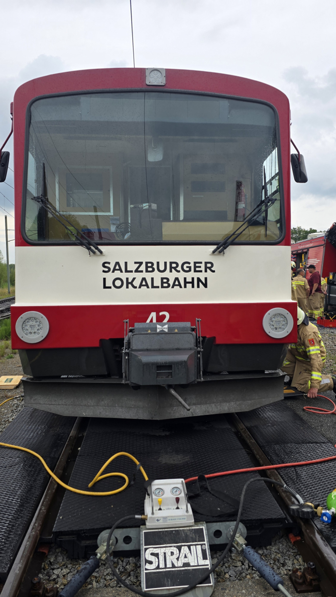 Gemeinsam mit der Einsatzleitung der Lokalbahn wurde an einer auf dem Stumpfgleis abgestellten Triebwagengarnitur die Hebepunkte erkundet. Im nächsten Schritt wurden die verschiedenen in Frage kommenden Gerätschaften (Hebekissen, Hydraulikstempel, Hubwinde, und LKW-Wagenheber) ausgewählt und nacheinander erfolgreich versucht, den Triebwagen am Kopfende entsprechend anzuheben. Dabei kam man zur Erkenntnis, dass vor allem die Höhe vom Boden bis zum Hebepunkt entscheidend ist, welches Gerät sich wie, je nach Lage optimal einsetzen lässt.