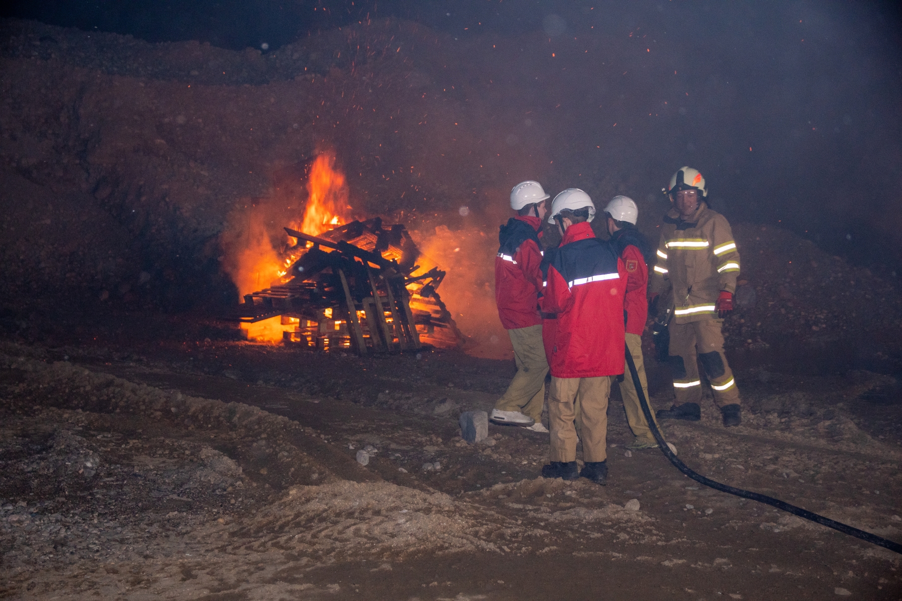 Zwei Holzhaufen standen in Flammen, und das Feuer war bereits aus der Ferne zu sehen. Sofort machte sich die Jugendgruppe bereit und fuhr mit den Löschfahrzeugen los. Vor Ort loderten bereits hohe Flammen. Die Jugendlichen bauten umgehend eine Löschleitung auf und brachten den Brand rasch unter Kontrolle. Um ein erneutes Aufflammen zu verhindern, wurde der Holzhaufen sorgfältig zerteilt.