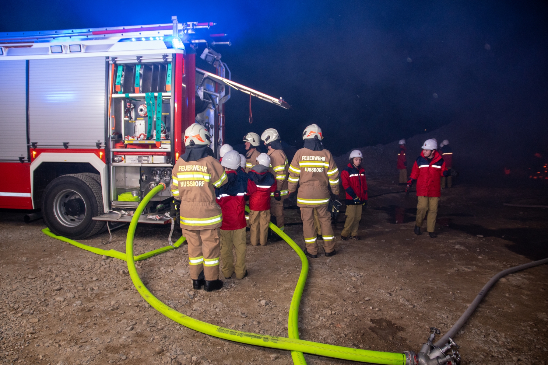 Zwei Holzhaufen standen in Flammen, und das Feuer war bereits aus der Ferne zu sehen. Sofort machte sich die Jugendgruppe bereit und fuhr mit den Löschfahrzeugen los. Vor Ort loderten bereits hohe Flammen. Die Jugendlichen bauten umgehend eine Löschleitung auf und brachten den Brand rasch unter Kontrolle. Um ein erneutes Aufflammen zu verhindern, wurde der Holzhaufen sorgfältig zerteilt.
