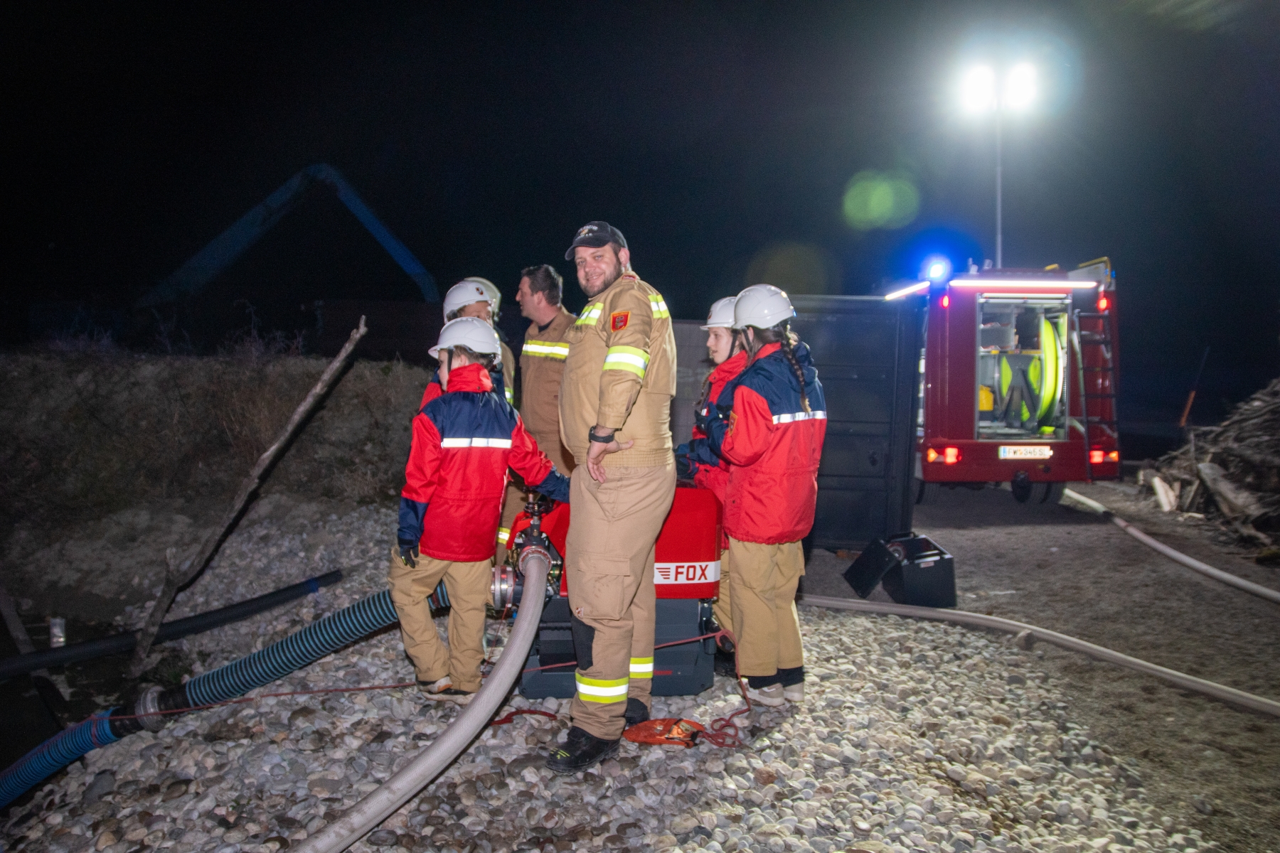 Auch nach diesem Einsatz mussten die Fahrzeuge wieder aufgerüstet und alle Geräte verstaut werden. Erst danach war es Zeit für die Nachtruhe – denn am nächsten Morgen wartete ein weiterer fordernder Tag auf die jungen Florianis.