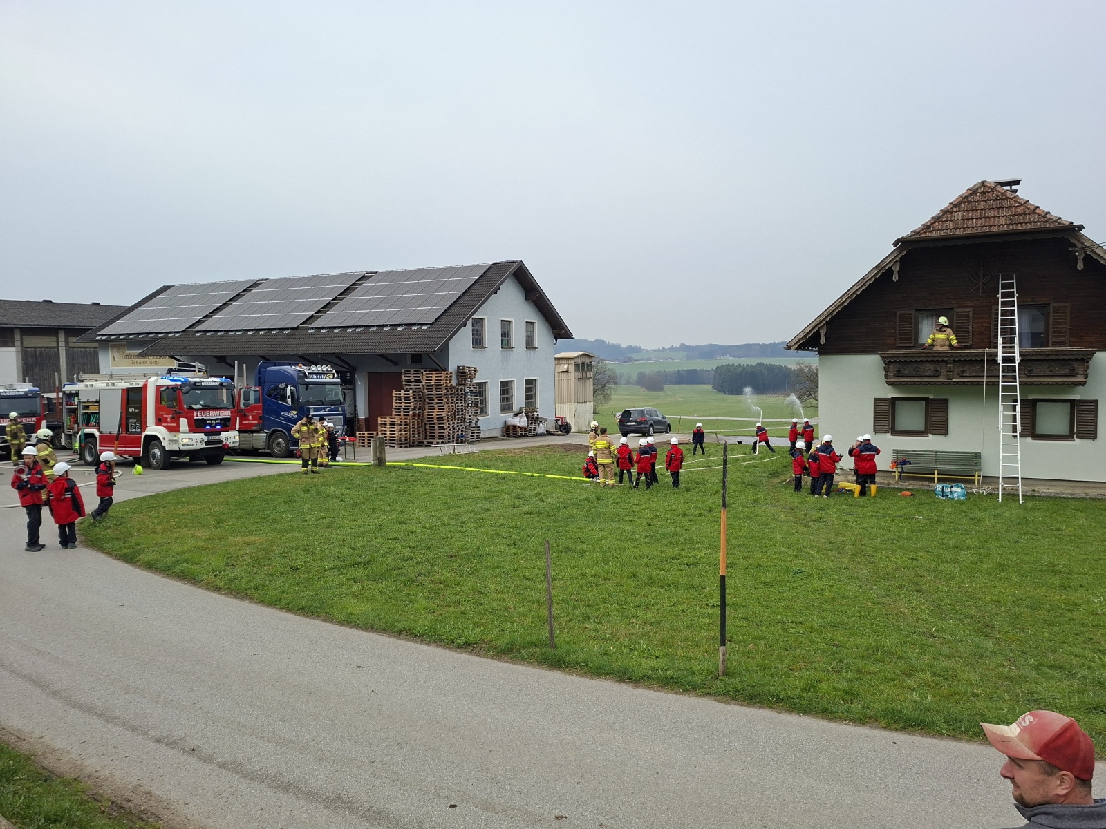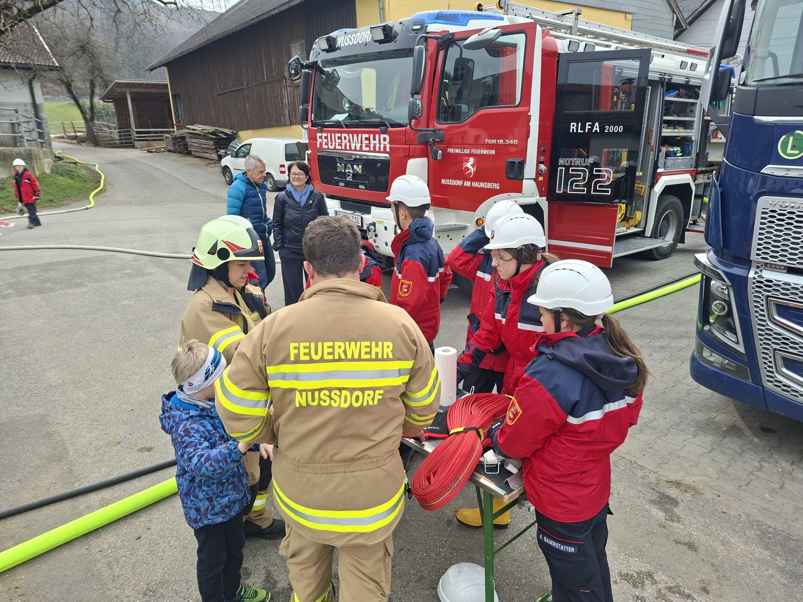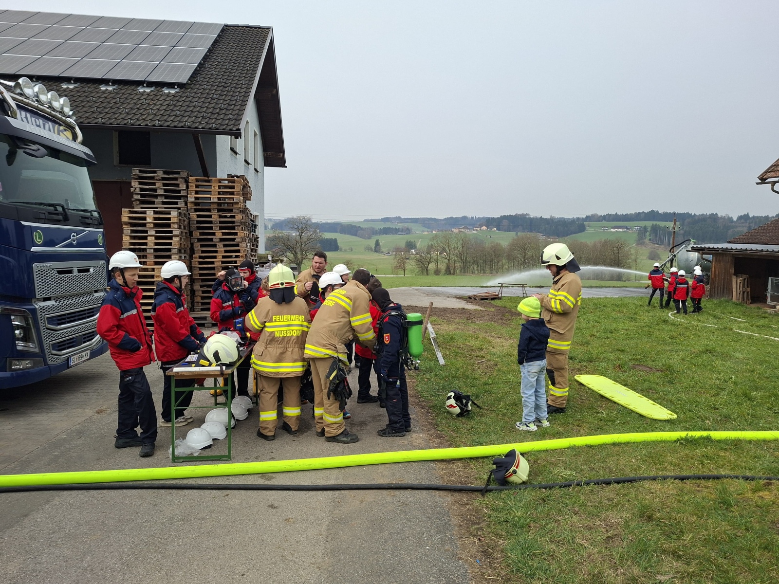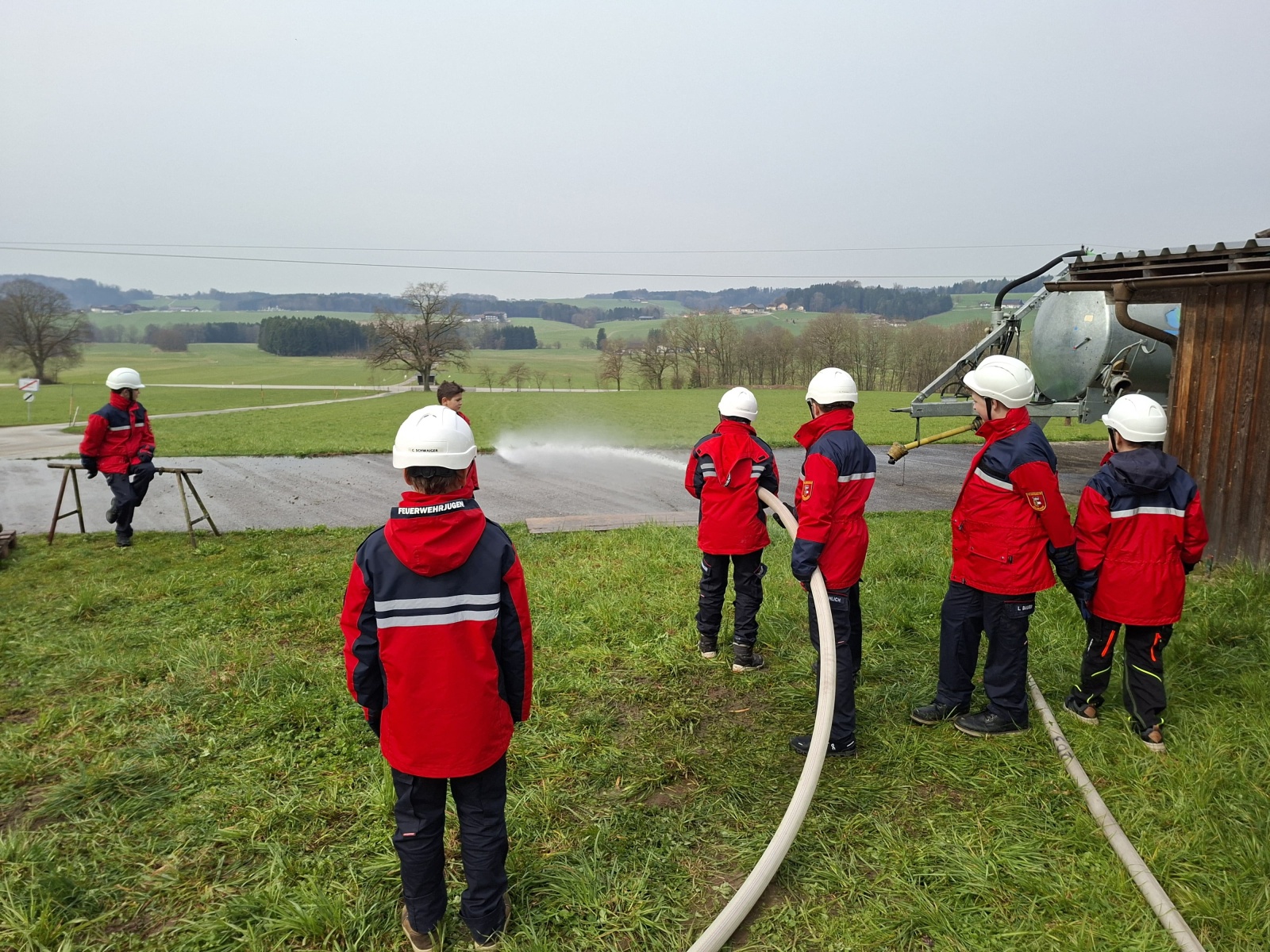 Nach der Begrüßung und dem Beziehen der Unterkunft startete das Programm mit einer realitätsnahen Übung in der Schottergrube in Weitwörth mit einem realistischen Brandszenario. Dabei wurden wichtige Abläufe wie der Aufbau der Wasserversorgung, das Absichern der Einsatzstelle sowie der Umgang mit Geräten und Schläuchen intensiv trainiert.