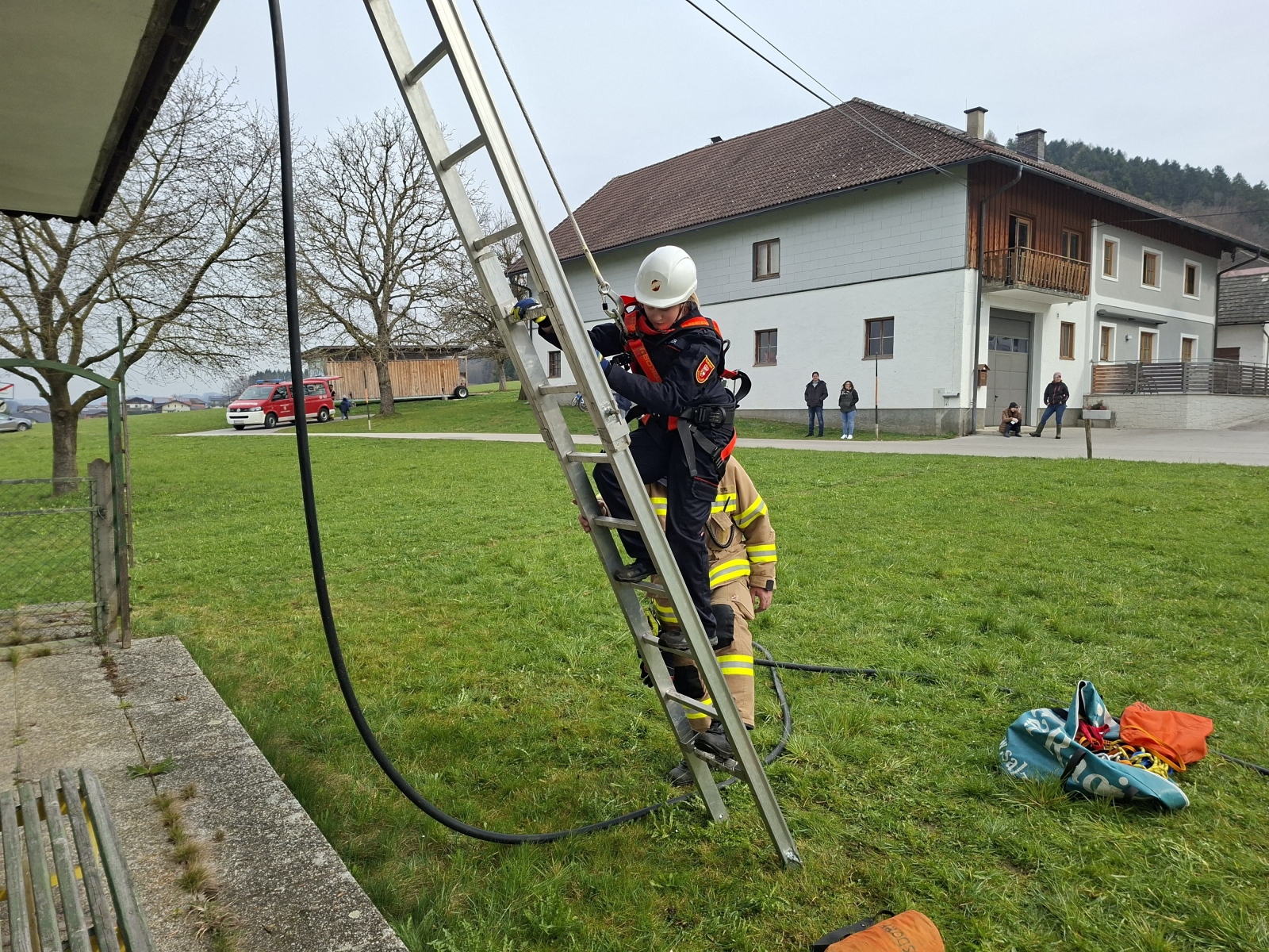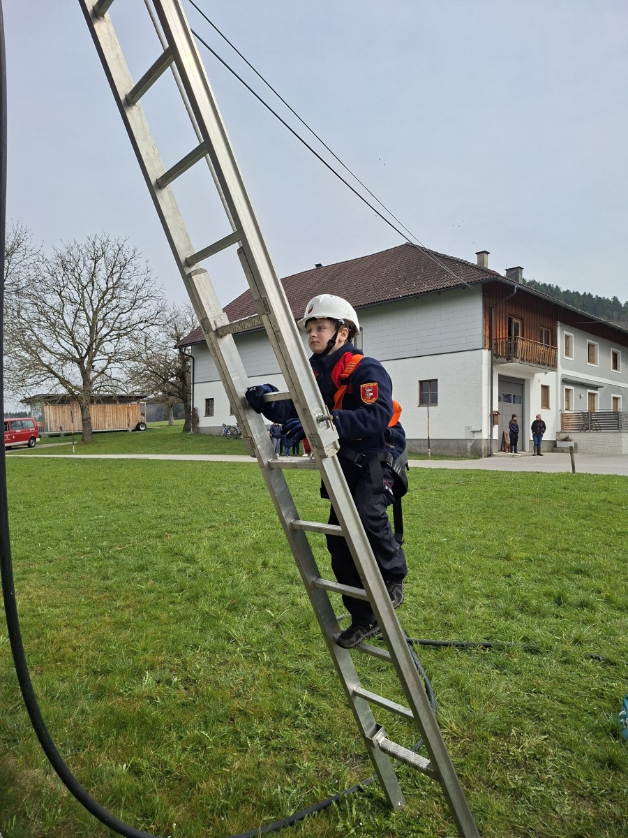 Nach der Nachtruhe begann der Samstag mit zwei parallel laufenden Einsatzübungen unter dem Szenario „Eingeklemmte Person“ und „Katze auf Baum“. In Gruppen eingeteilt, konnten die Jugendlichen ihr Können sowie ihre Teamfähigkeit unter Beweis stellen.
