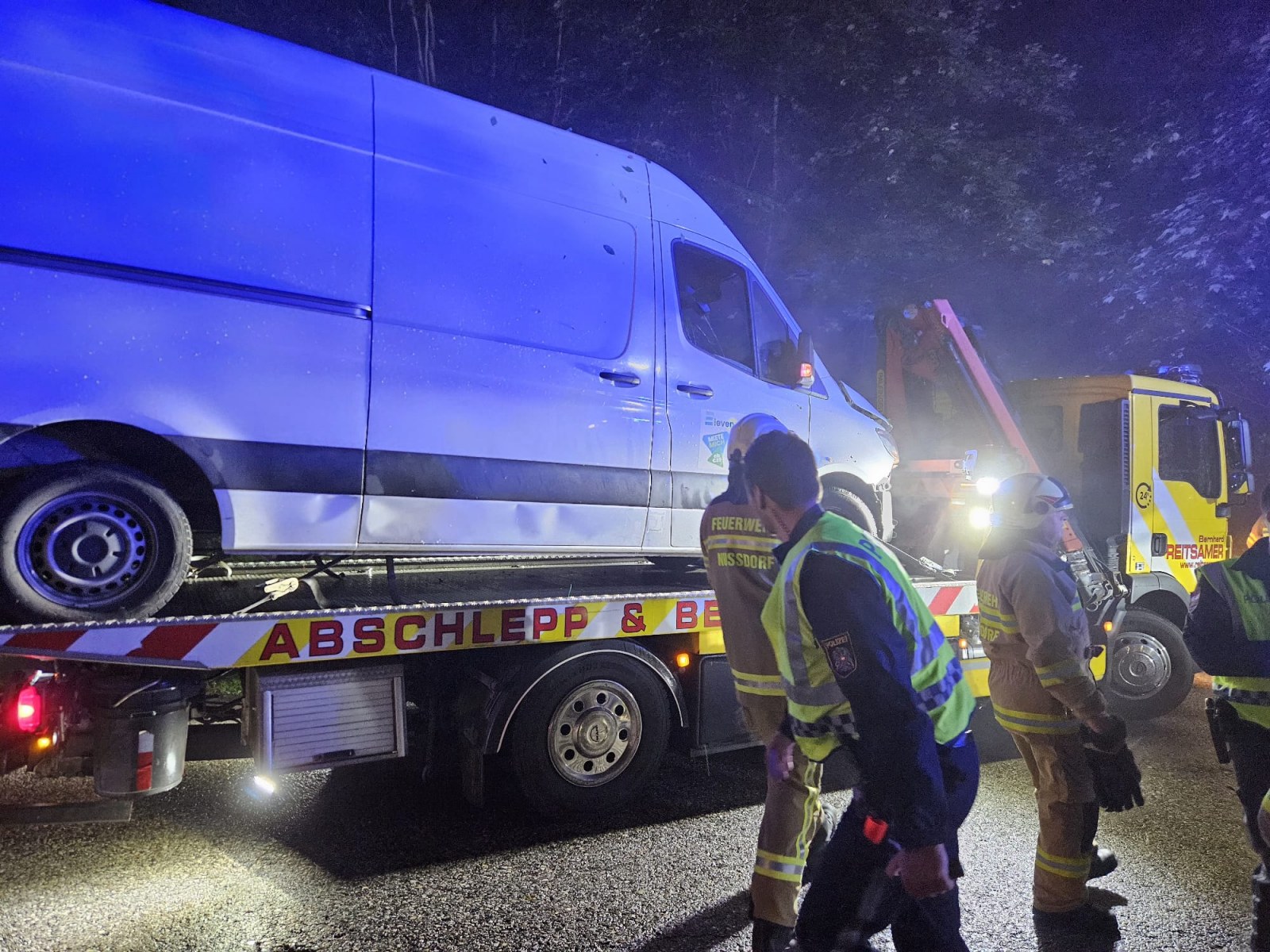 Ein Kleintransporter krachte bei der S-Kurve Richtung Absmann gegen einen Baum und kam dort im Graben zum Stillstand. Die verletzte Person konnte von der Rettung geborgen werden und das Fahrzeug wurde mit Abschleppseilen aus dem Graben gezogen. Im Einsatz waren: die FF Nußdorf mit dem LZ Pinswag, die FF Oberndorf, die Polizei, das Rote Kreuz sowie ein Abschleppfahrzeug. Auch anwesend beim Einsatz war AFK vom Flachgau Abschnitt 1, BR Pitter Andreas. Einsatzleiter war OFK Stv. Brandstetter Daniel.