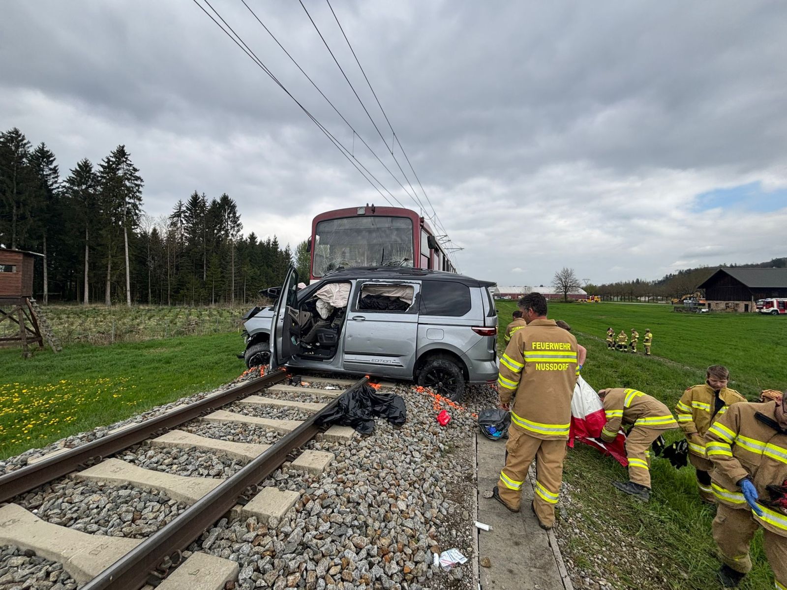 Am 16.4. wurden die Einsatzkräfte zu einem Verkehrsunfall im Bereich Pabing alarmiert. Aus bislang ungeklärter Ursache kam es im Bereich eines unbeschrankten Bahnübergangs zur Kollision zwischen einem PKW und einem Zug der Lokalbahn. Durch die Wucht des Aufpralls wurde das Fahrzeug mehrere Meter mitgerissen.