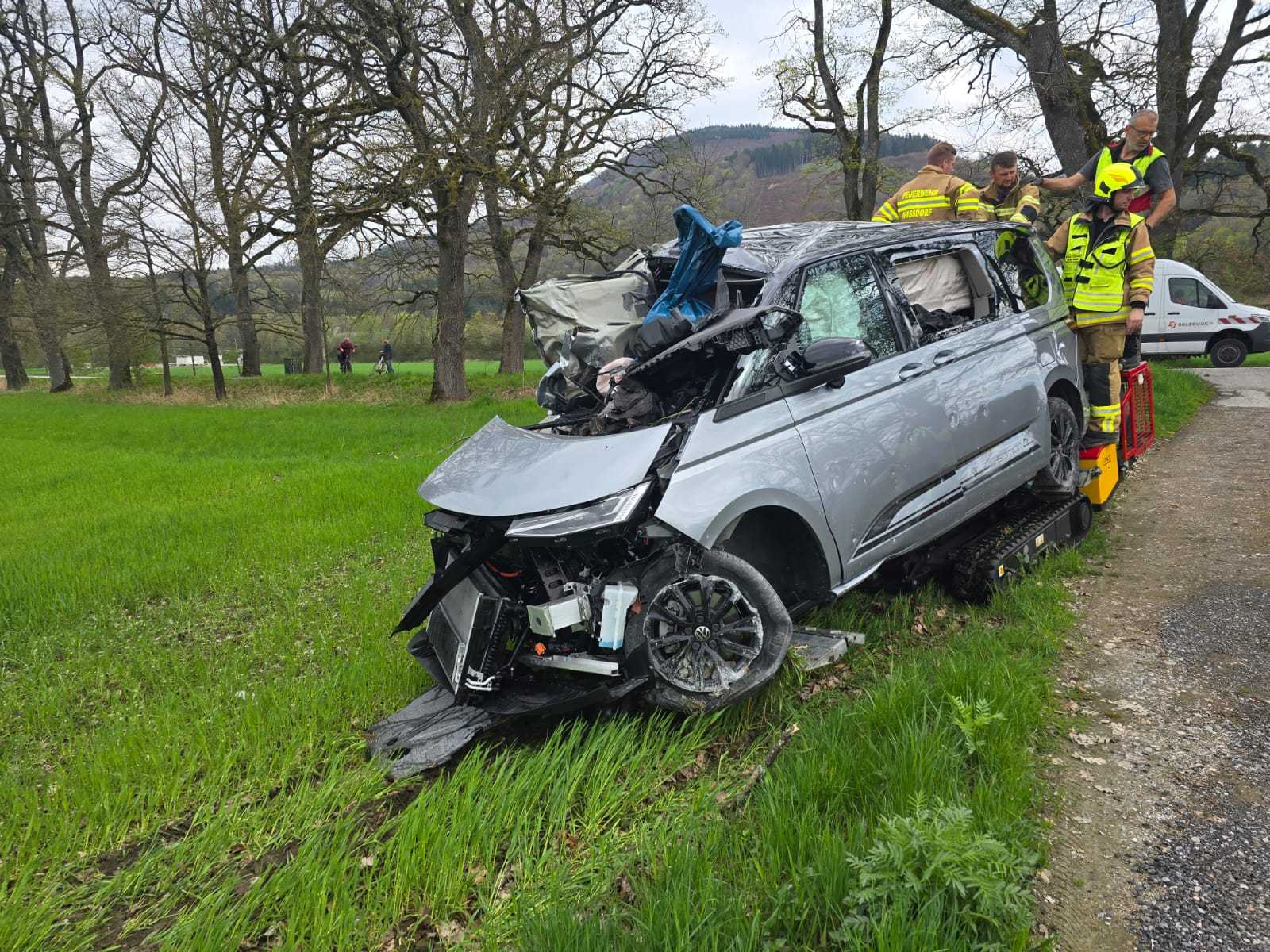 Weitere Kräfte: 1 Notarzthubschrauber , 2 Abschleppwagen , Bestattungsunternehmen , Einsatzleitung SLB / Salzburg AG , Feuerwehr Anthering , Notarzt , Polizei , Polizeidrohne , Rettung , Verkehrsunfallsachverständiger