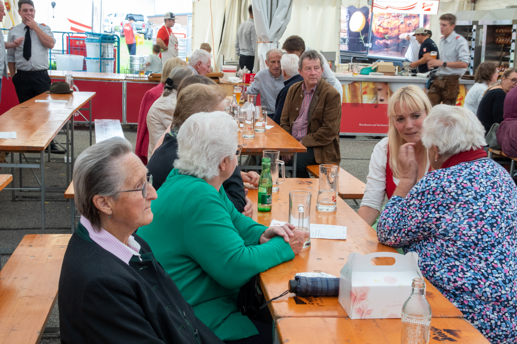Am Sonntagmorgen wurde frühzeitig für den Frühschoppen umgerüstet. Zwar war es früher üblich, dass das Zelt direkt nach dem Kirchgang gut gefüllt war, doch ab halb elf strömten die Gäste zahlreich herbei. Bald war das Festzelt bis auf den letzten Platz gefüllt.