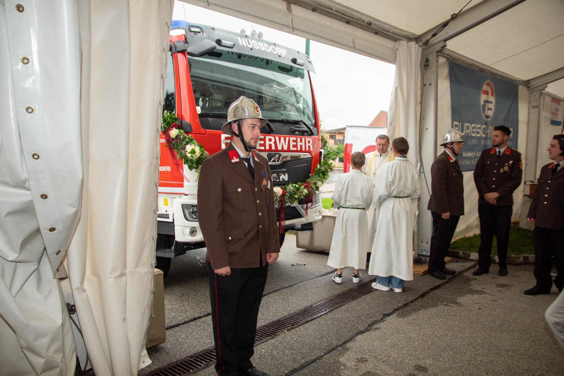 Nach dem Eintreffen der Gastfeuerwehren und Ehrengäste – darunter Landesrat Josef Schwaiger, Bürgermeisterin Waltraud Brandstetter, Abt Johannes Perkmann, Landesfeuerwehrkommandant FVPräs. Günter Trinker, Bezirksfeuerwehrkommandant OBR Klaus Lugstein, Abschnittsfeuerwehrkommandant BR Andreas Pitter, sowie zahlreiche Ehrenmitglieder – begann um 18:30 Uhr nach der offiziellen Begrüßung die feierliche Segnung des neuen LFA.