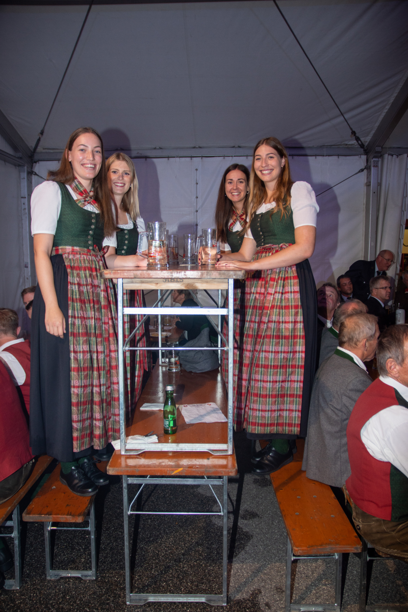 Am Sonntagmorgen wurde frühzeitig für den Frühschoppen umgerüstet. Zwar war es früher üblich, dass das Zelt direkt nach dem Kirchgang gut gefüllt war, doch ab halb elf strömten die Gäste zahlreich herbei. Bald war das Festzelt bis auf den letzten Platz gefüllt.