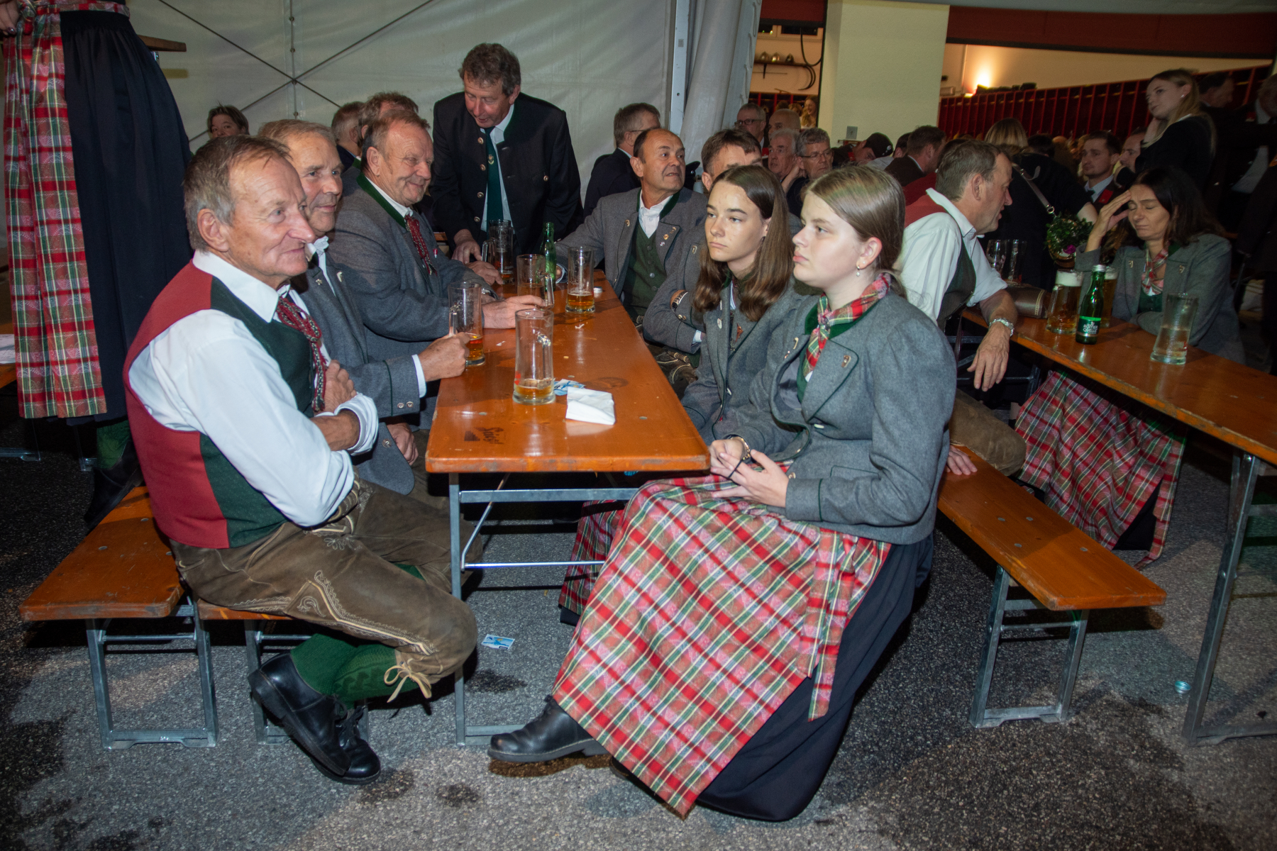 Am Sonntagmorgen wurde frühzeitig für den Frühschoppen umgerüstet. Zwar war es früher üblich, dass das Zelt direkt nach dem Kirchgang gut gefüllt war, doch ab halb elf strömten die Gäste zahlreich herbei. Bald war das Festzelt bis auf den letzten Platz gefüllt.
