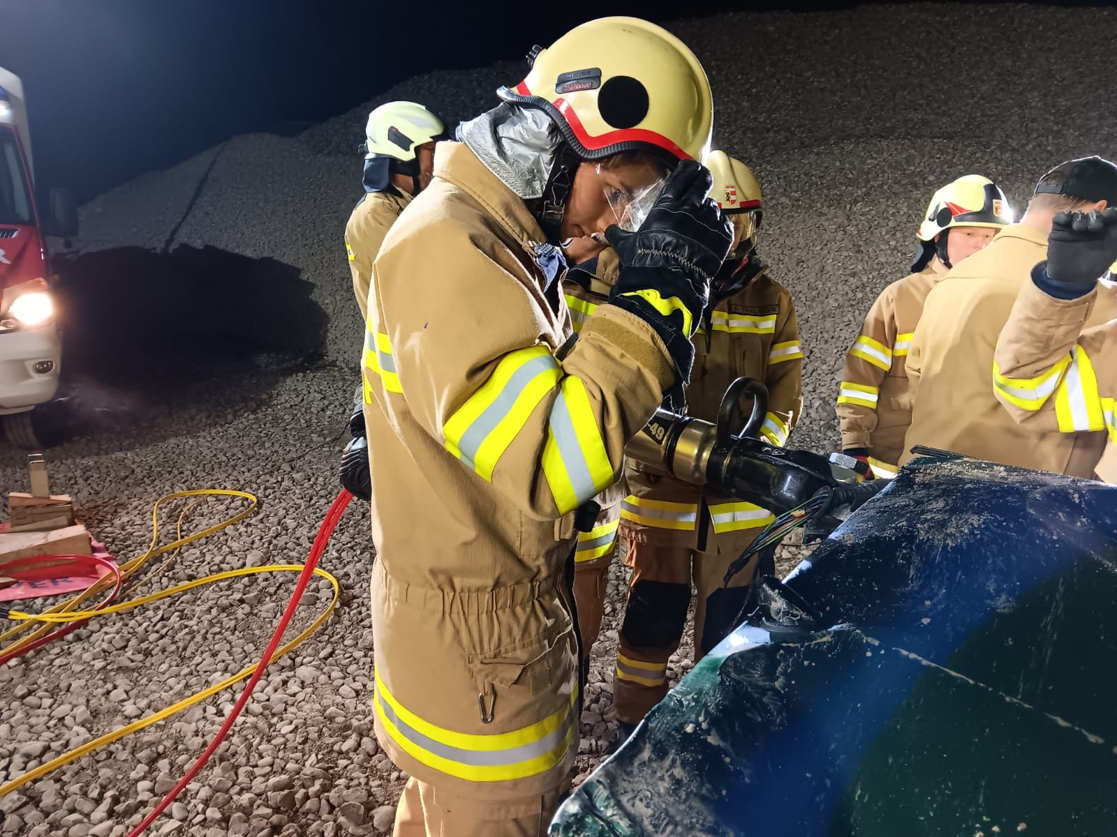 Unter der Übungsleitung und Vorbereitung von VI Ortwin Schitter wurde ein realistisches Szenario vorbereitet: Ein verunfalltes Fahrzeug, in dem eine Übungspuppe (Dummy) eingeklemmt war, musste mithilfe des hydraulischen Rettungssatzes (Bergeschere und Spreizer) geöffnet werden. Ziel war es, die verschiedenen Arbeitsschritte bei der technischen Menschenrettung – von der Absicherung der Unfallstelle über die Stabilisierung des Fahrzeuges bis hin zur schonenden Befreiung der verletzten Person – zu trainieren und zu verfeinern.