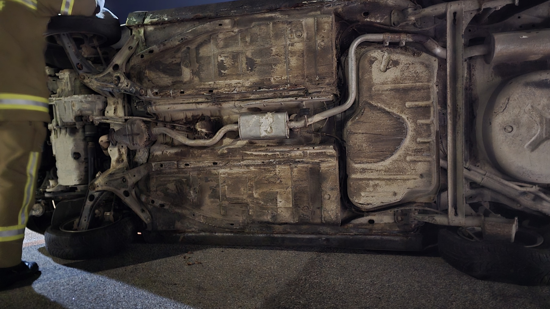 Im Mittelpunkt der Übung stand ein PKW, der zunächst kontrolliert umgedreht wurde. Anschließend wurden verschiedene Fahrzeuglagen und Sicherungsmöglichkeiten durchgespielt. Ziel war es, das Fahrzeug mit unterschiedlichen Abstützvarianten möglichst stabil zu sichern, um ein sicheres Arbeiten an und im Fahrzeug zu gewährleisten.